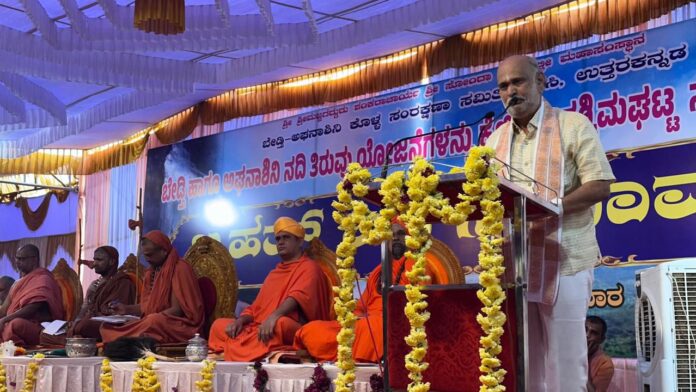 ಉತ್ತರ ಕನ್ನಡ: ಪರಿಸರಕ್ಕೆ ಮಾರಕವಾಗಲಿರುವ ಬೇಡ್ತಿ-ವರದಾ ನದಿ ಜೋಡಣೆ ಎಂಬ ಅವೈಜ್ಞಾನಿಕ ಯೋಜನೆಯನ್ನು ಕೈಬಿಡುವಂತೆ ಆಗ್ರಹಿಸಿ ಇಂದು ಶಿರಸಿಯಲ್ಲಿ ಬೃಹತ್ ಸಾರ್ವಜನಿಕ ಸಮಾವೇಶ ನಡೆಯಿತು.