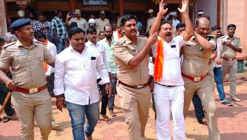 ಹಾವೇರಿ | ಮುಸ್ಲಿಮರ ವಿರುದ್ಧ ಹಿಂದುತ್ವವಾದಿಗಳ ಪ್ರತಿಭಟನೆ; ವಶಕ್ಕೆ ಪಡೆದ ಪೊಲೀಸರು
