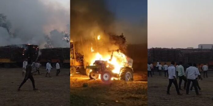 ಪ್ರತಿ ಟನ್ ಕಬ್ಬಿಗೆ 3,500 ರೂಪಾಯಿ ಘೋಷಿಸುವಂತೆ ಆಗ್ರಹಿಸಿ ಬಾಗಲಕೋಟೆ ಜಿಲ್ಲೆಯಲ್ಲಿ ಕಬ್ಬು ಬೆಳೆಗಾರರು ನಡೆಸಿರುವ ಹೋರಾಟ ತೀವ್ರ ಸ್ವರೂಪ ಪಡೆದುಕೊಂಡಿದೆ. 50ಕ್ಕೂ ಹೆಚ್ಚು ಕಬ್ಬು ತುಂಬಿದ್ದ ಟ್ರ್ಯಾಕ್ಟರ್ಗಳಿಗೆ ಕಿಡಿಗೇಡಿಗಳು ಬೆಂಕಿ ಹಚ್ಚಿದ್ದಾರೆ.