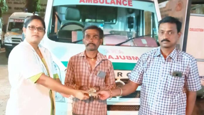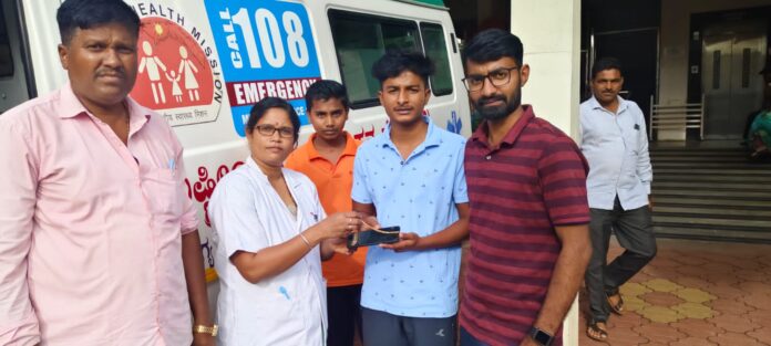 ಬೆಳಗಾವಿ ಜಿಲ್ಲೆಯ ಅಥಣಿ ತಾಲೂಕಿನ 108 ಆ್ಯಂಬುಲೆನ್ಸ್ ಸಿಬ್ಬಂದಿ ಅಪಘಾತದಲ್ಲಿ ಗಾಯಗೊಂಡು ಆಸ್ಪತ್ರೆಗೆ ಸೇರಿದ್ದ ವ್ಯಕ್ತಿಗೆ ಸೇರಿದ್ದ ಚಿನ್ನ ಹಾಗೂ ಮೊಬೈಲ್ ಅನ್ನು ತಲುಪಿಸುವ ಮೂಲಕ ಪ್ರಾಮಾಣಿಕತೆ ಮೆರೆದಿದ್ದಾರೆ.