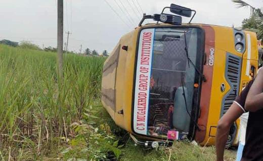 ಶಾಲಾ ವಿದ್ಯಾರ್ಥಿಗಳು ಸಂಚರಿಸುತ್ತಿದ್ದ ಖಾಸಗಿ ಶಾಲೆ ಬಸ್ ಚಾಲಕನ ನಿಯಂತ್ರಣ ತಪ್ಪಿದ ಪರಿಣಾಮ ವಾಹನ ಪಲ್ಟಿಯಾಗಿದ್ದು, ಮಕ್ಕಳಿಗೆ ಸಣ್ಣಪುಟ್ಟ ಗಾಯಗಳಾದ ಘಟನೆ ಬೆಳಗಾವಿ ಜಿಲ್ಲೆ ಮೂಡಲಗಿ ತಾಲೂಕಿನ ಪಟ್ಟಗುಂದಿ ಗ್ರಾಮದ ಹೊರವಲಯದಲ್ಲಿ ನಡೆದಿದೆ.