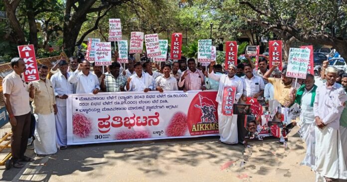 ಪ್ರಸ್ತುತ ಜಿಲ್ಲೆಯ ಮಾರುಕಟ್ಟೆಗಳಲ್ಲಿ ಮೆಣಸಿನಕಾಯಿ ಬೆಳೆಗೆ ಸರಿಯಾದ ಬೆಲೆ ಸಿಗದೆ ರೈತರು ನಷ್ಟ ಅನುಭವಿಸುತ್ತಿದ್ದಾರೆ. ಹಾಗಾಗಿ ಮೆಣಸಿನಕಾಯಿ ಬೆಳೆಗೆ ಸರಿಯಾದ ಬೆಂಬಲ ಬೆಲೆ ಘೋಷಿಸಬೇಕು ಎಂದು ಒತ್ತಾಯಿಸಿ ಜಲ್ಲಾಧಿಕಾರಿಗೆ ಅಖಿಲ ಭಾರತ ರೈತ...
