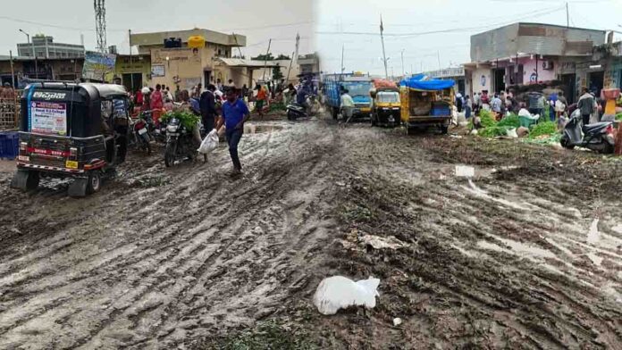 ಬಳ್ಳಾರಿ ನಗರದಲ್ಲಿ ಸುರಿದ ಮಳೆಗೆ ಎಪಿಎಂಸಿ ಮೈದಾನ ಕೆಸರು ಗದ್ದೆಯಂತಾಗಿದೆ. ರೈತರು, ವ್ಯಾಪಾರಿಗಳು ಹಾಗೂ ಗ್ರಾಹಕರು ಮಾರುಕಟ್ಟೆಯಲ್ಲಿ ವ್ಯಾಪಾರ ಮಾಡುವುದಿರಲಿ, ಓಡಾಡುವುದಕ್ಕೂ ಪರದಾಡುವಂಯಹ ಪರಿಸ್ಥಿತಿ ಎದುರಾಗಿದೆ.