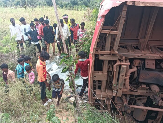 ಬಳ್ಳಾರಿ ಜಿಲ್ಲೆ ಸಂಡೂರು ತಾಲ್ಲೂಕಿನ ಕಾಟೀನ್ಕಂಬ ಬಳಿ ಸರಕಾರಿ ಬಸ್ ಚಾಲಕನ ನಿಯಂತ್ರಣ ತಪ್ಪಿ ಬಸ್ ಪಲ್ಟಿಯಾಗಿ ಶಾಲಾ ಮಕ್ಕಳು ಸೇರಿ 55 ಜನರಿಗೆ ಗಾಯವಾದ ಘಟನೆ ಬುಧವಾರ ನಡೆದಿದೆ.