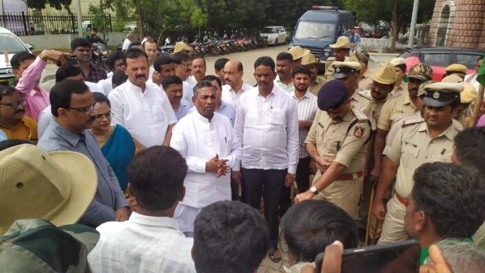 ಬೆಂಗಳೂರು ಗ್ರಾಮಾಂತರ ಜಿಲ್ಲೆಯ ಚನ್ನರಾಯಪಟ್ಟಣದ ಭೂಸ್ವಾಧೀನ ವಿರೋಧಿ ಹೋರಾಟ ಸಮಿತಿಯ ರೈತರ ವಿರುದ್ಧ ದಾಖಲಿಸಿದ್ದ ಮೊಕದ್ದಮೆಗೆ ಸಂಬಂಧಿಸಿದಂತೆ ರೈತರು ಬೆಂಗಳೂರು ನಗರದ ಡಿಸಿಪಿ ಕಚೇರಿಯಲ್ಲಿ ಹಾಜರಾದರು.
