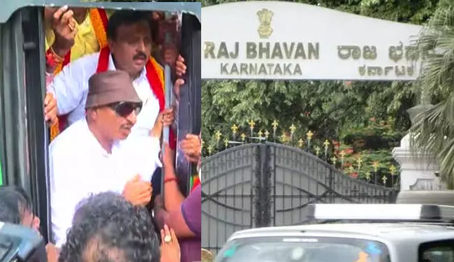 ತಮಿಳುನಾಡಿಗೆ ಕಾವೇರಿ ನದಿ ನೀರು ಹರಿಸುತ್ತಿರುವುದನ್ನು ಖಂಡಿಸಿ ಸೆ.26 ರಂದು ‘ಬೆಂಗಳೂರು ಬಂದ್’ ನಡೆಸಲಾಗುತ್ತಿದೆ. ಪ್ರತಿಭಟನೆ ವೇಳೆ ರಾಜಭವನಕ್ಕೆ ಮುತ್ತಿಗೆ ಹಾಕಲು ಯತ್ನಿಸಿದ ಕನ್ನಡಪರ ಹೋರಾಟಗಾರ ವಾಟಾಳ್ ನಾಗರಾಜ್, ಸಾ.ರಾ.ಗೋವಿಂದು ಹಾಗೂ ಇನ್ನಿತರರನ್ನು...