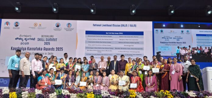 ರಾಷ್ಟ್ರೀಯ ಜೀವನೋಪಾಯ ಅಭಿಯಾನ (NRLM & NULM) ಅಡಿಯಲ್ಲಿ ಅತ್ಯುತ್ತಮ ಸಾಧನೆಗೈದ ರಾಜ್ಯದ 8 ಜಿಲ್ಲೆಗಳ ಸ್ವ-ಸಹಾಯ ಗುಂಪುಗಳ ಸದಸ್ಯರಿಗೆ ನೀಡಿ ಬೆಂಗಳೂರು ಕೌಶಲ್ಯ ಶೃಂಗಸಭೆ-2025 ಪ್ರಶಸ್ತಿ ನೀಡಿ ಗೌರವಿಸಲಾಯಿತು.