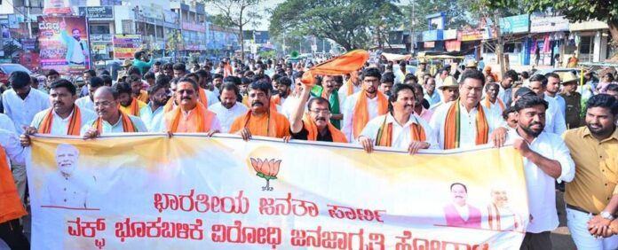 ವಕ್ಫ್ ಮಂಡಳಿಯ ವಿರುದ್ಧ ಬಿಜೆಪಿ ಶಾಸಕ ಬಸವನಗೌಡ ಪಾಟೀಲ್ ಯತ್ನಾಳ ನೇತ್ರತ್ವದ ತಂಡ ಬೀದರ್ ನಗರದಲ್ಲಿ ಸೋಮವಾರ ಗಣೇಶ ಮೈದಾನದಿಂದ ಪ್ರತಿಭಟನೆ ನಡೆಸಿ ಜಿಲ್ಲಾಧಿಕಾರಿಗಳಿಗೆ ಹಕ್ಕೊತ್ತಾಯ ಪತ್ರ ಸಲ್ಲಿಸಿದರು.