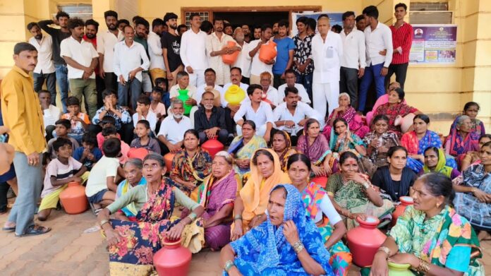 ಬಡಾವಣೆಯ ನಿವಾಸಿಗಳು ಕೈಯಲ್ಲಿ ಖಾಲಿ ಕೊಡ ಹಿಡಿದು, ಬಾಜಾ ಭಜಂತ್ರಿದೊಂದಿಗೆ...