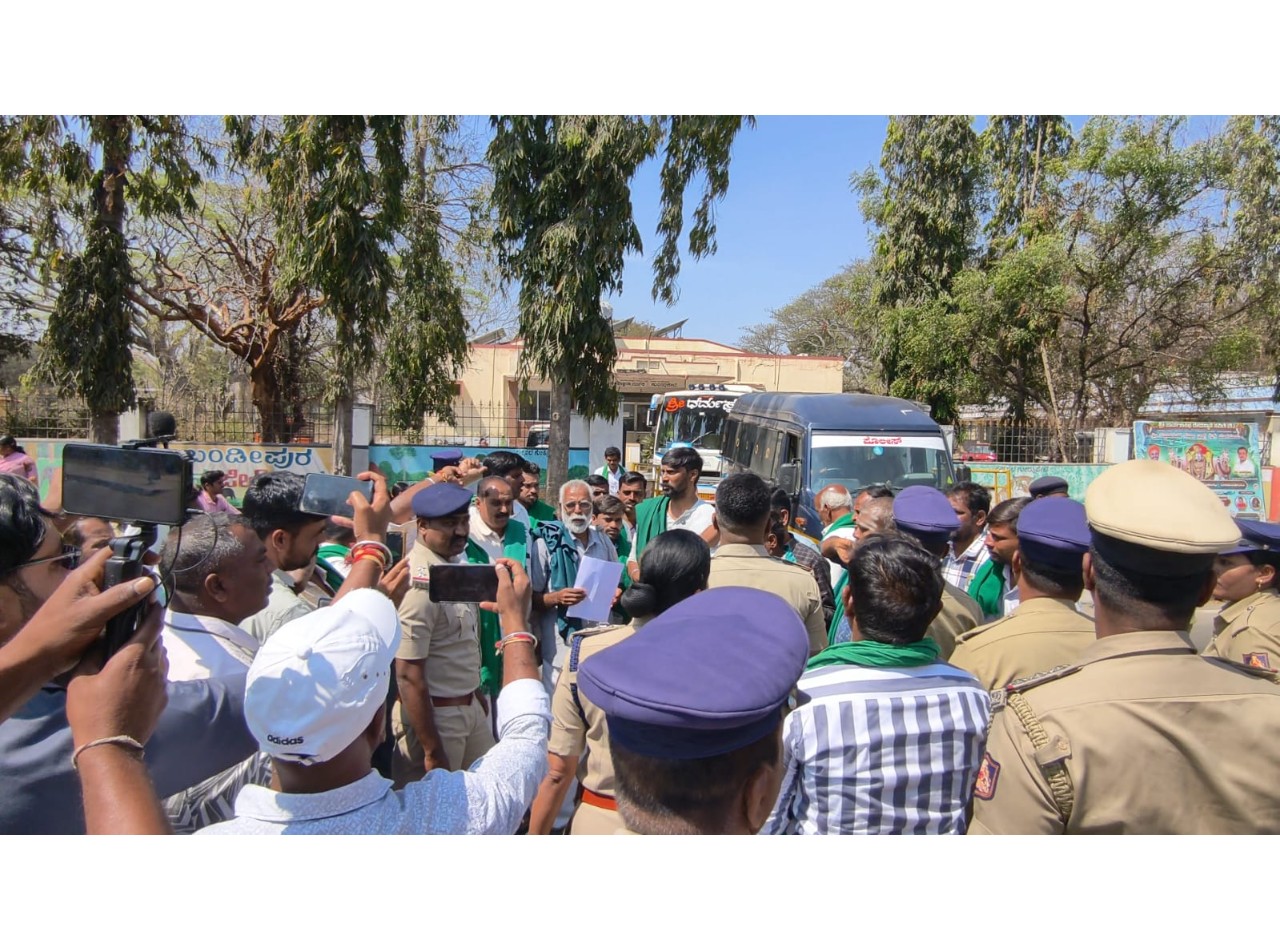 ಚಾಮರಾಜನಗರ ಜಿಲ್ಲೆ, ಗುಂಡ್ಲುಪೇಟೆಯಲ್ಲಿ ಕರ್ನಾಟಕ ರಾಜ್ಯ ರೈತಸಂಘ ಕಳೆದ 36 ದಿನಗಳಿಂದ ನಡೆಸುತ್ತಿರುವ ಅಹೊರಾತ್ರಿ ಧರಣಿಯಲ್ಲಿ ರಾಜ್ಯಾಧ್ಯಕ್ಷರಾದ ಬಡಗಲಪುರ ನಾಗೇಂದ್ರ ಮಾತನಾಡಿ, ಗಾಂಧೀಜಿಯವರ ಗ್ರಾಮೀಣ ಅಭಿವೃದ್ಧಿ ಕನಸನ್ನು ನನಸಾಗಿಸುವಂತೆ ಒತ್ತಾಯಿಸಿದರು.