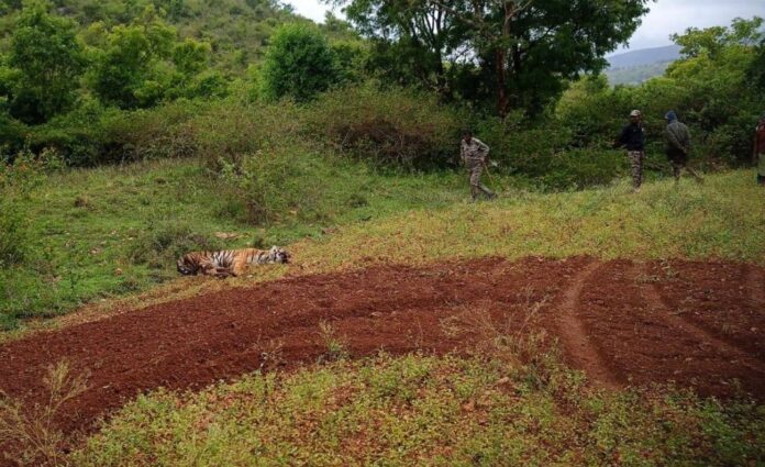 ಚಾಮರಾಜನಗರ ಜಿಲ್ಲೆಯ ಗುಂಡ್ಲುಪೇಟೆ ತಾಲೂಕಿನ ಬಂಡೀಪುರ ಹುಲಿ ಸಂರಕ್ಷಿತ ಪ್ರದೇಶದ ಸಮೀಪದಲ್ಲಿ ಹುಲಿಯೊಂದು ಗಾಯಗೊಂಡಿದ್ದ ಸ್ಥಿತಿಯಲ್ಲಿ ಪತ್ತೆಯಾದ ಘಟನೆ ನಡೆದಿದೆ.