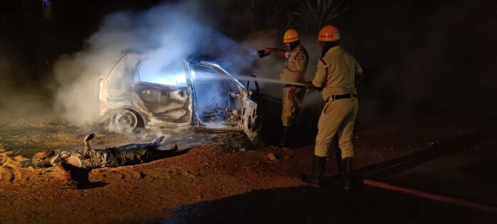 ಬಾಗೇಪಲ್ಲಿ:ಚಲಿಸುತ್ತಿದ್ದ ಕಾರಿನಲ್ಲಿ ಆಕಸ್ಮಿಕವಾಗಿ ಬೆಂಕಿ ಕಾಣಿಸಿಕೊಂಡು ಚಾಲಕ ಕಾರಿನ ಒಳಗೇ ಸಜೀವ ದಹನವಾಗಿರುವ ಭೀಕರ ಘಟನೆ ಬಾಗೇಪಲ್ಲಿ ತಾಲೂಕಿನ ಅಚೆಪಲ್ಲಿ ಗ್ರಾಮದ ಬಳಿ ಈ ದುರ್ಘಟನೆ ಸಂಭವಿಸಿದೆ.