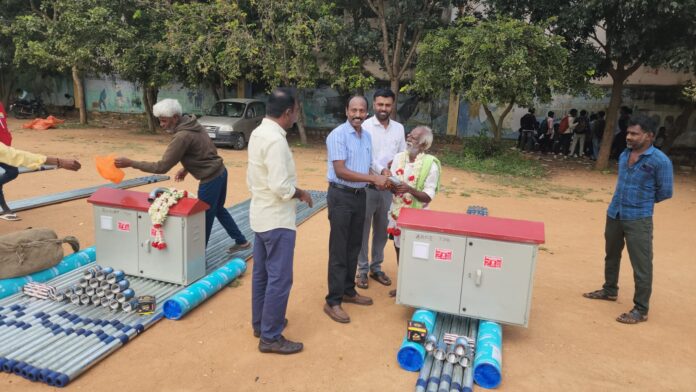 ಕರ್ನಾಟಕ ಮಹರ್ಷಿ ವಾಲ್ಮೀಕಿ ಪರಿಶಿಷ್ಟ ಪಂಗಡ ಅಭಿವೃದ್ಧಿ ನಿಗಮದಿಂದ ಗಂಗಾ ಕಲ್ಯಾಣ ಯೋಜನೆಯಡಿ 8 ಮಂದಿ ರೈತರಿಗೆ ಕೊರೆದ ಕೊಳವೆ ಬಾವಿಗಳಿಗೆ ಪಂಪ್ ಸೆಟ್ ಮತ್ತು ಇತರೆ ಸಾಮಗ್ರಿಗಳನ್ನು ವಿತರಣೆ ಮಾಡಲಾಗಿದೆ. ಚಿಂತಾಮಣಿ...