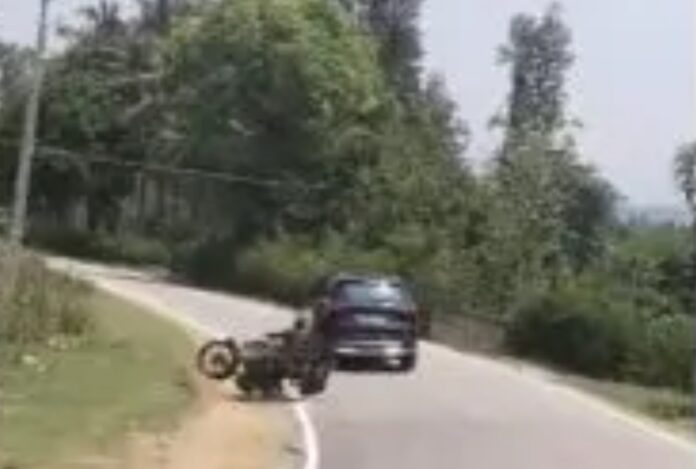 ಚಲಿಸುತ್ತಿದ್ದ ಬೈಕ್ʼಗೆ ಕಾರು ಡಿಕ್ಕಿ ಓಡೆದು ಕಾರಿನ ಚಾಲಕ ಎಸ್ಕೇಪ್ ಆಗಿರುವ ಘಟನೆ, ಚಿಕ್ಕಮಗಳೂರು ಜಿಲ್ಲೆ ಶೃಂಗೇರಿ ತಾಲೂಕು ರಾಜ್ಯ ಹೆದ್ದಾರಿ, ಖಾಂಡ್ಯ ಸಮೀಪದ ಬೆಳಸೆ ಗ್ರಾಮದಲ್ಲಿ ಬುಧವಾರ ನಡೆದಿದೆ.
