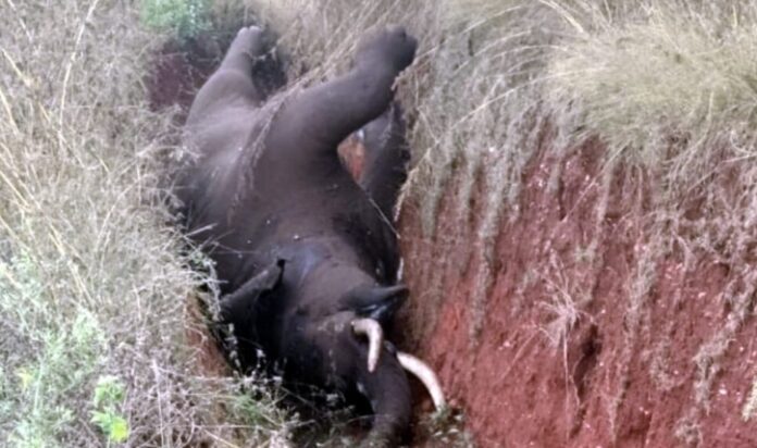 ಜೋತು ಬಿದ್ದಿದ್ದ ವಿದ್ಯುತ್ ತಂತಿ ತಗುಲಿದ ಪರಿಣಾಮ ಮೂರು ದಿನಗಳ ಹಿಂದೆಯೇ ಕಾಡಾನೆಯೊಂದು ಕಂದಕಕ್ಕೆ...
