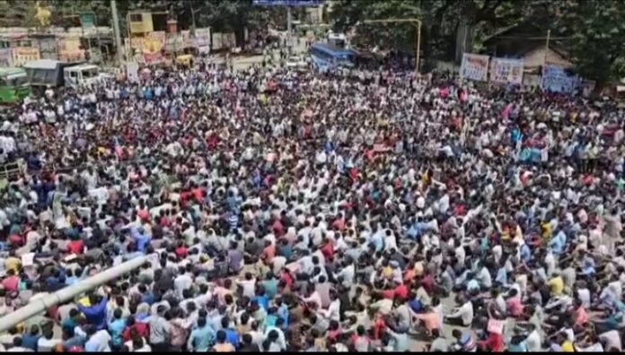 ಧಾರವಾಡ ಪಟ್ಟಣದ ಜುಬಿಲಿ ವೃತ್ತದಲ್ಲಿ ವಿದ್ಯಾರ್ಥಿಗಳು ಜಮಾಯಿಸಿ, ಪ್ರತಿಭಟಸುತ್ತಿದ್ದವರು...