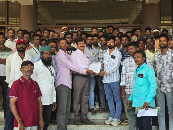 "ಕಾರ್ಮಿಕರಿಗೆ ನೀಡಲಾಗುವ ಉಚಿತ ಕಿಟ್ ಗಳ ಹಂಚಿಕೆಯಲ್ಲಿ ಅಧಿಕಾರಿಗಳು ಬಹಳಷ್ಟು ತಾರತಮ್ಯ ಮಾಡುತ್ತಿದ್ದು, ಕೂಡಲೇ ಅವರ ವಿರುದ್ಧ ಸೂಕ್ತ ಕ್ರಮ ಜರುಗಿಸಬೇಕು" ಎಂದು ಜಿಲ್ಲಾಧಿಕಾರಿ ಕಛೇರಿ ಎದುರು ಕಾರ್ಮಿಕರು ಪ್ರತಿಭನೆ ನಡೆಸಿದರು.