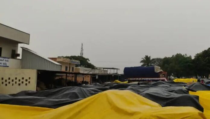 ಮಳೆಯಿಂದಾಗಿ ಬ್ಯಾಡಗಿ ಮಾರುಕಟ್ಟೆಯಲ್ಲಿ ಮಾರಾಟ ಮಾಡಲು ತಂದಿದ್ದ ಮೆಣಸಿನಕಾಯಿ ಉಳಿಸಿಕೊಳ್ಳಲು ರೈತರು, ವರ್ತಕರು ಪರದಾಟ ನಡೆಸಿದ್ದಾರೆ.