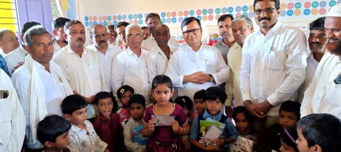 ದಾಖಲಾತಿ ಹೆಚ್ಚಿಸುವ ಉದ್ದೇಶದಿಂದ ಶಾಲೆಯಲ್ಲಿ ಒಂದನೆ ತರಗತಿಗೆ ಪ್ರವೇಶ ಪಡೆದ 33 ಮಕ್ಕಳಿಗೆ ಒಂದು ಸಾವಿರ ಠೇವಣಿ ಹಾಗೂ ಕಲಿಕಾ ಸಾಮಗ್ರಿಗಳನ್ನು ಶಾಸಕ ಶ್ರೀನಿವಾಸ ಮಾನೆ ವಿತರಿಸಿದರು.