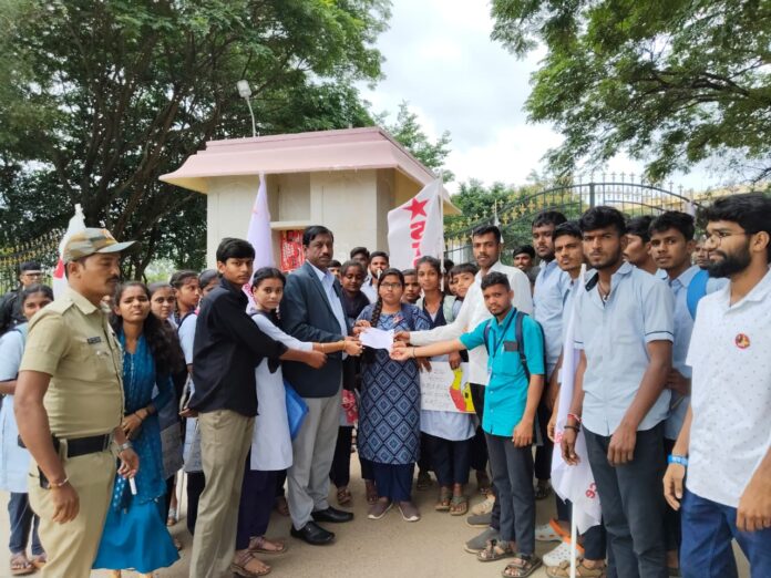 ಸರ್ಕಾರಿ ಪರಿಶಿಷ್ಟ ಜಾತಿ ಹಾಗೂ ಪರಿಶಿಷ್ಟ ಪಂಗಡದ ವಸತಿಯುತ ಪ್ರಥಮ ದರ್ಜೆ ಕಾಲೇಜಿಗೆ ವಸತಿ ಸೌಲಭ್ಯ ವಂಚನೆ: ಜಿಲ್ಲಾಧಿಕಾರಿಗಳ ಮಧ್ಯೆ ಪ್ರವೇಶಕ್ಕಾಗಿ ಆಗ್ರಹಿಸಿ ಎಸ್ಎಫ್ಐ ನೇತೃತ್ವದಲ್ಲಿ ವಿದ್ಯಾರ್ಥಿಗಳು ಪ್ರತಿಭಟನ ನಡೆಸಿದರು.