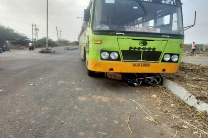 ಸಾರಿಗೆ ಸಂಸ್ಥೆಯ ಬಸ್ಸು ಬೈಕ್ಗೆ ಡಿಕ್ಕಿ ಹೊಡೆದ ಪರಿಣಾಮ ಬೈಕ್ ಸವಾರ ಸ್ಥಳದಲ್ಲಿಯೇ ಮೃತಪಟ್ಟ ಘಟನೆ ರಾಣೇಬೆನ್ನೂರ್ ಪಟ್ಟಣದ ಹೊರವಲಯದ ಜಾನುವಾರು ಮಾರುಕಟ್ಟೆ ಬಳಿ ನಡೆದಿದೆ.