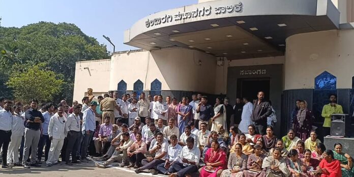'ಅಸಂಸದೀಯ’ ಪದಗಳನ್ನು ಬಳಸಿರುವುದನ್ನು ಖಂಡಿಸಿ ಪಾಲಿಕೆ ಅಧಿಕಾರಿಗಳು ಹಾಗೂ ಸಿಬ್ಬಂದಿಗಳು ಮಂಗಳವಾರ ಸಾಂಕೇತಿಕ ಧರಣಿ ನಡೆಸಿದರು.