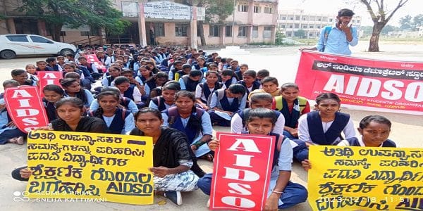 ಅತಿಥಿ ಉಪನ್ಯಾಸಕರ ಸಮಸ್ಯೆಗಳನ್ನು ಪರಿಹರಿಸಿ, ಪದವಿ ವಿದ್ಯಾರ್ಥಿಗಳ ಶೈಕ್ಷಣಿಕ ಗೊಂದಲವನ್ನು ಬಗೆಹರಿಸಬೇಕೆಂದು ಎಐಡಿಎಸ್ಒ ಆಗ್ರಹಿಸಿದೆ.