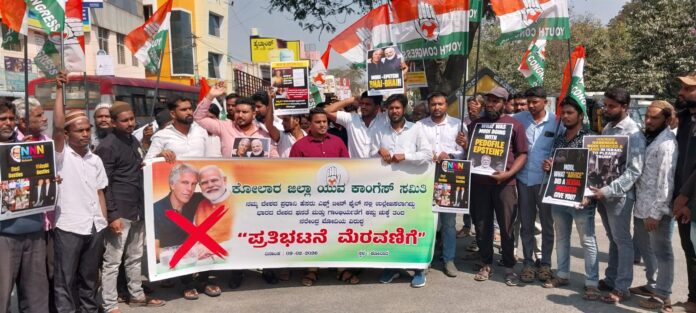 ಕೋಲಾರ: ದೇಶದ ಪ್ರಧಾನ ಮಂತ್ರಿ ನರೇಂದ್ರ ಮೋದಿ ಅವರ ಹೆಸರು ಎಫ್ಸ್ ಟೀನ್ ಫೈಲ್ ನಲ್ಲಿ ಉಲ್ಲೇಖಿಸಲಾಗಿದ್ದು ಭಾರತ ದೇಶದ ಘನತೆ ಮತ್ತು ಗಾಂಭೀರ್ಯತೆಗೆ ಕಪ್ಪು ಚುಕ್ಕೆ ತಂದಿದ್ದಾರೆ ಕೂಡಲೇ ರಾಜೀನಾಮೆ ಕೊಡಬೇಕು...
