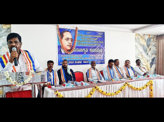 ಮೈಸೂರು ಜಿಲ್ಲೆ, ಹುಣಸೂರು ಪಟ್ಟಣದ ಖಾಸಗಿ ಹೋಟೆಲ್ ನಲ್ಲಿ ಸಂವಿಧಾನ ಶಿಲ್ಪಿ ಡಾ. ಬಿ. ಆರ್. ಅಂಬೇಡ್ಕರ್ ಅವರ 134 ಜಯಂತಿ ಅಂಗವಾಗಿ ನಡೆದ ಜನಜಾಗೃತಿ ಸಮಾವೇಶದಲ್ಲಿ ದಸಂಸ ರಾಜ್ಯ ಸಂಚಾಲಕರಾದ ಗುರುಪ್ರಸಾದ್...