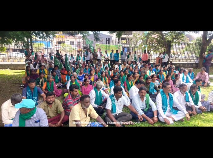 ಮೈಸೂರಿನ ಜಿಲ್ಲಾಧಿಕಾರಿ ಕಚೇರಿ ಆವರಣದಲ್ಲಿ ಕರ್ನಾಟಕ ರಾಜ್ಯ ರೈತ ಸಂಘದ ಕಾರ್ಯಕರ್ತರು ಕೆಐಎಡಿಬಿ ಭೂ ಸ್ವಾಧೀನ ಸಂಭಂದವಾಗಿ ಭೂಮಿ ಕಳೆದುಕೊಂಡ ರೈತರಿಗೆ ಪರಿಹಾರ ವಿತರಿಸದೆ ಅಕ್ರಮ ಎಸಗಿರುವುದು, ತನಿಖೆ ವಿಳಂಬ ಹಾಗೂ ತಪ್ಪಿತಸ್ಥ...