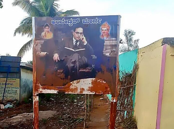 ಮೈಸೂರು ಜಿಲ್ಲೆ, ನಂಜನಗೂಡು ತಾಲ್ಲೂಕು ಹಲ್ಲರೆ ಗ್ರಾಮದಲ್ಲಿ ಅಂಬೇಡ್ಕರ್ ಭಾವಚಿತ್ರವಿರುವ ನಾಮಫಲಕಕ್ಕೆ ಕಿಡಿಗೇಡಿಗಳು ಕೆಸರೆರಚಿ ಅವಮಾನಿಸಿದ್ದಾರೆ.