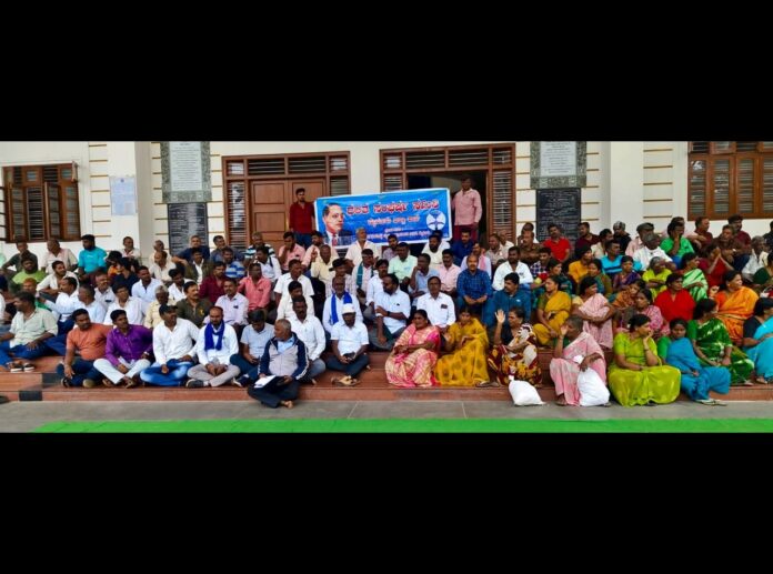 ಮೈಸೂರು ಜಿಲ್ಲಾಧಿಕಾರಿ ಕಚೇರಿ ಮುಂಭಾಗ ದಲಿತ ಸಂಘರ್ಷ ಸಮಿತಿ ವತಿಯಿಂದ ಸುಪ್ರೀಂಕೋರ್ಟ್ ನ್ಯಾಯಮೂರ್ತಿ ಬಿ.ಆರ್. ಗವಾಯಿಯವರ ಮೇಲೆ ವಕೀಲ ರಾಕೇಶ್ ಕಿಶೋರ್ ಶೂ ಎಸೆತ ಖಂಡಿಸಿ ಪ್ರತಿಭಟನೆ ನಡೆಸಿದರು.