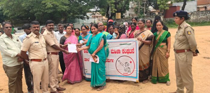 ಮಹಿಳೆ ಮೇಲೆ ಲೈಂಗಿಕ ದೌರ್ಜನ್ಯ ಎಸಗಿದ ವ್ಯಕ್ತಿಗೆ ಕಠಿಣ ಶಿಕ್ಷೆ ನೀಡಬೇಕೆಂದು ಜನವಾದಿ ಮಹಿಳಾ ಸಂಘಟನೆಯ ಕಾರ್ಯಕರ್ತರು ಜಮಾವಣೆಗೊಂಡು ದೇವದುರ್ಗ ನಗರದ ಕ್ಲಬ್ ಮೈದಾನದಲ್ಲಿ ಪ್ರತಿಭಟಿಸಿ ಸಿಪಿಐ ಗುಂಡೂರಾವ್ ಅವರಿಗೆ ಮನವಿ ಪತ್ರ...