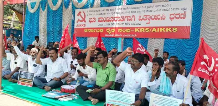 ಸರ್ಕಾರದ ಜಮೀನನ್ನು ಅಕ್ರಮವಾಗಿ ಉಳುಮೆ ಮಾಡುತ್ತಿರುವುದರಿಂದ ನಾಡಗೌಡರ ಕುಟುಂಬದ ಸದಸ್ಯರ ವಿರುದ್ಧ ಕ್ರಿಮಿನಲ್ ಪ್ರಕರಣ ದಾಖಲಿಸುವಂತೆ ಒತ್ತಾಯಿಸಿ ರಾಯಚೂರು ಜಿಲ್ಲೆ ಸಿಂಧನೂರಿನ ಮಿನಿ ವಿಧಾನಸೌಧ ಕಚೇರಿ ಎದುರು ರೈತ ಸಂಘ ಹಾಗೂ ಸಿಪಿಐಎಂಎಲ್...