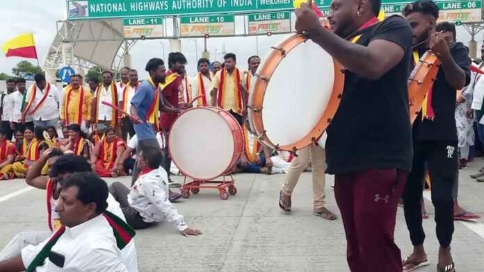 ಬೆಂಗಳೂರು-ಮೈಸೂರು ಎಕ್ಸ್ಪ್ರೆಸ್-ವೇನಲ್ಲಿ ಟೋಲ್ ಶುಲ್ಕವನ್ನು ರಾಷ್ಟ್ರೀಯ ಹೆದ್ದಾರಿ ಪ್ರಾಧಿಕಾರ ಹೆಚ್ಚಿಸಿದೆ. ಪ್ರಾಧಿಕಾರದ ನಿರ್ಧಾರವನ್ನು ಖಂಡಿಸಿ ಕನ್ನಡಪರ ಸಂಘಟನೆಗಳ ಕಾರ್ಯಕರ್ತರು ಕಣಮಿಣಕಿ ಟೋಲ್ ಬಳಿ ಪ್ರತಿಭಟನೆ ನಡೆಸಿದ್ದಾರೆ.