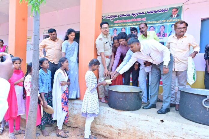 ತುಮಕೂರು ಜಿಲ್ಲೆಯ ಶಿರಾ ತಾಲ್ಲೂಕಿನ ತಾವರೇಕೆರೆ ಗ್ರಾಮದ ಶ್ರೀ ಸಿದ್ದಾರ್ಥ ಪದವಿ ಪೂರ್ವ ಕಾಲೇಜಿನಲ್ಲಿ ಹಳೆ ವಿದ್ಯಾರ್ಥಿಗಳು ಹಾಗೂ ಗ್ರಾಮಸ್ಥರು ಸೇರಿ ಬಿಸಿಯೂಟ ಸೇವಾ ಕಾರ್ಯವನ್ನು ಬುಧವಾರದಂದು ಅನುಷ್ಠಾನಗೊಳಿಸಿದರು.