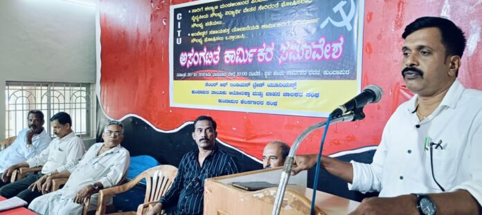 ಅಸಂಘಟಿತ ಕಾರ್ಮಿಕರು ತಮ್ಮ ಸೌಲಭ್ಯಗಳನ್ನು ಸುಸೂತ್ರವಾಗಿ ಪಡೆಯಲು ಹಾಗೂ ಸೌಲಭ್ಯ ಹೆಚ್ಚಳಕ್ಕಾಗಿ ಸರ್ಕಾರದ ಮೇಲೆ ಒತ್ತಡ ತರಲು ಸಂಘಟಿತರಾಗಬೇಕು ಎಂದು ಸಿಐಟಿಯು ಜಿಲ್ಲಾ ಪ್ರಧಾನ ಕಾರ್ಯದರ್ಶಿ ಸುರೇಶ್ ಕಲ್ಲಾಗರ ಹೇಳಿದರು.