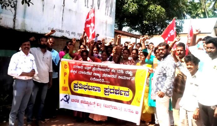 ರಾಜ್ಯದ ನಾಲ್ಕು ಸಾರಿಗೆ ನಿಗಮಗಳ ಬಸ್ ಪ್ರಯಾಣ ದರವನ್ನು ಶೇ 15 ರಷ್ಟು ಏರಿಕೆ ಮಾಡಿರುವ ಸರಕಾರದ ಕ್ರಮವನ್ನು ಖಂಡಿಸಿ ಇಂದು ವಂಡ್ಸೆಯಲ್ಲಿ ಸಿಪಿಎಂ ಪಕ್ಷದ ನೇತೃತ್ವದಲ್ಲಿ ಪ್ರತಿಭಟನೆ ನಡೆಯಿತು.