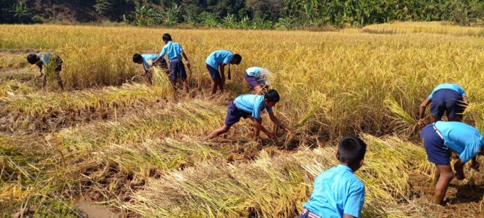 ಸಿದ್ದಾಪುರ | ವಿದ್ಯಾರ್ಥಿಗಳಿಂದ ಭತ್ತದ ಕೊಯ್ಲು: ಪ್ರಾಯೋಗಿಕ ಕೃಷಿ ಅಧ್ಯಯನಕ್ಕೆ ಸಾಕ್ಷಿಯಾದ ಹುಲ್ಕುತ್ರಿ ಶಾಲೆ