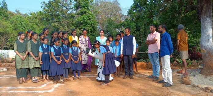 ಸಿದ್ದಾಪುರ | ಹುಲ್ಕುತ್ರಿ ಶಾಲೆಯಲ್ಲಿ ‘ಬಾನು ಬೆರಗು’: ಟೆಲಿಸ್ಕೋಪ್ ಮೂಲಕ ಆಕಾಶಕಾಯಗಳನ್ನು ವೀಕ್ಷಿಸಿದ ವಿದ್ಯಾರ್ಥಿಗಳು