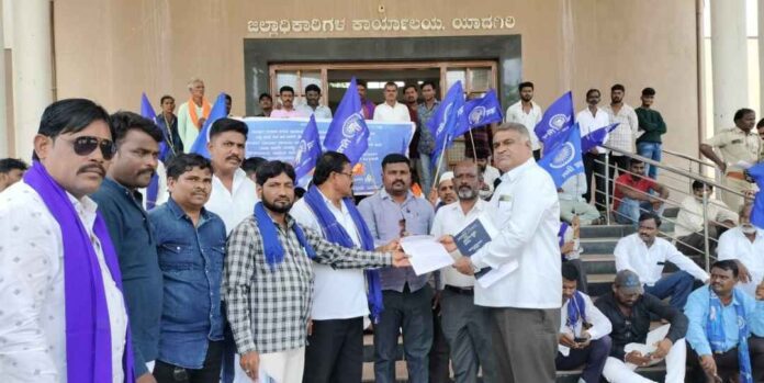 ಸಾಮಾಜಿಕ ಭದ್ರತೆ ಯೋಜನೆಗಳ ನಿಯಮವನ್ನು ಸಡಿಲಿಸಿ ಮಾಸಿಕ ₹5,000 ಹೆಚ್ಚಿಸುವಂತೆ ಒತ್ತಾಯಿಸಿ ಕರ್ನಾಟಕ ಗಾಂಧಿವಾದಿ ಜನಪರ ಚಳವಳಿ ಸಮಿತಿಯಿಂದ ಯಾದಗಿರಿ ಜಿಲ್ಲೆಯ ಸುರಪುರ ತಹಶೀಲ್ದಾರರಿಗೆ ಮನವಿ ಪತ್ರ ಸಲ್ಲಿಸಿದರು.