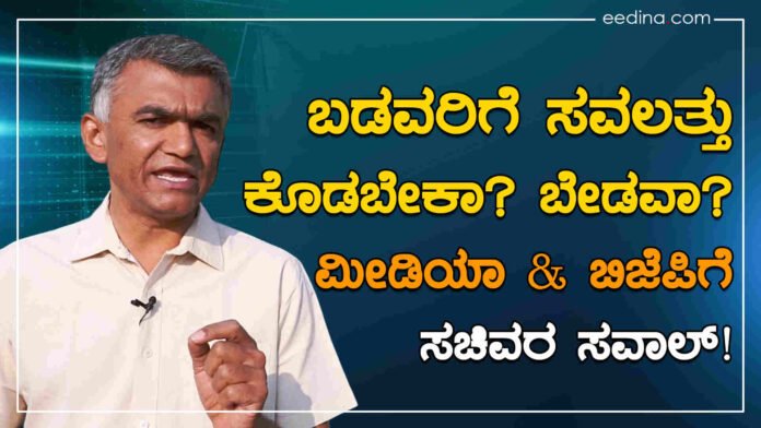 ಕಾಂಗ್ರೆಸ್ ಸರ್ಕಾರ ಮತದಾರರಿಗೆ 5 ಗ್ಯಾರಂಟಿ ಭಾಗ್ಯಗಳನ್ನು ಘೋಷಿಸಿತ್ತು. ಇದೀಗ ಅವುಗಳ ಜಾರಿ ಪ್ರಕ್ರಿಯೆಯಲ್ಲಿದೆ. ಬಡವರಿಗೆ ಅನುಕೂಲ ಮಾಡುವ ಈ ಯೋಜನೆಗಳ ಬಗ್ಗೆ ಮಾಧ್ಯಮಗಳು ಮತ್ತು ಬಿಜೆಪಿ ಅಪಪ್ರಚಾರ ಮಾಡುತ್ತಿವೆ ಎಂದು ಸಚಿವ...