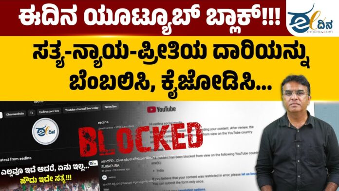 ಸೌಜನ್ಯ ಪರ ನಿಂತಿದ್ದಕ್ಕೆ ಈದಿನ ಯೂಟ್ಯೂಬ್‌ ಚಾನೆಲ್ ಬ್ಲಾಕ್ : ಪರ್ಯಾಯವಾಗಿ eedina tv ಕಾರ್ಯ ನಿರ್ವಹಣೆ