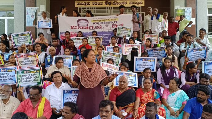 ಧರ್ಮಸ್ಥಳ ಮತ್ತು ಬೆಳ್ತಂಗಡಿ ಪೊಲೀಸ್ ಠಾಣಾ ವ್ಯಾಪ್ತಿಯಲ್ಲಿ ಕಳೆದ ೨೦ ವರ್ಷದಿಂದ ದಾಖಲಾಗಿರುವ ಅಸಹಜ ಸಾವುಗಳು ಅತ್ಯಾಚಾರ. ದೌರ್ಜನ್ಯ, ಕೊಲೆಗಳ ಸಾಕ್ಷನಾಶ ಪಡೆಸಿ ಹೊತ್ತಿಟ್ಟಿರುವ, ನಾಪತ್ತೆಯಾಗಿರುವ ನೊರಾರು ಯುವತಿಯರು. ವಿದ್ಯಾರ್ಥಿನಿಯರು. ಮಹಿಳೆಯರ ಪ್ರಕರಣಗಳನ್ನು ಭೇದಿಸಲು ಎಸ್.ಐ.ಟಿ. ಮರು ರಚಿಸಿ ತನಿಖೆಗಳನ್ನು ನಡೆಸಬೇಕು. ಇದನ್ನು ಸ್ಥಗಿತಗೊಳಿಸಲು ಬಿ.ಜೆ.ಪಿ. ಸೇರಿದಂತೆ ಕೆಲವು ಪಟ್ಟ ಭದ್ರಹಿತಾಸಕ್ತರು ವಿಫಲ ಪ್ರಯತ್ನಗಳು ನಡೆಸುತ್ತಿದೆ. ಎಸ್.ಐ.ಟಿ.ಯನ್ನು ಒತ್ತಡಕ್ಕೆ ಒಳಪಡಿಸಲು. ದೂರುದಾರರು ಸಾಕ್ಷಧಾರರನ್ನು ಬೆದರಿಸಿ ತೇಜೂವಧೆ ನಡೆಸಿ ಹಿಮ್ಮೆಟ್ಟಿಸುವ ಯತ್ನಗಳ ವಿರುದ್ದ ಕ್ರಮ ಕೈಗೊಳ್ಳಬೇಕು.