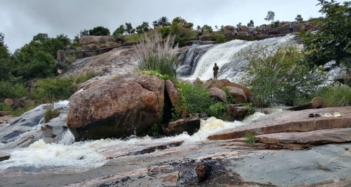 ಬರದ ನಾಡಲ್ಲಿ ಬೆಟ್ಟ ಗುಡ್ಡಗಳ ನಡುವೆ ಮಳೆಯ ನೀರು ಹರಿಯುತ್ತಿದ್ದು, ಅಪರೂಪದ ಜಲಪಾತ ಜನರನ್ನು ಕೈಬೀಸಿ ಕರೆಯುತ್ತಿದೆ.