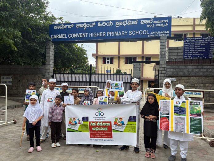 “ಮಣ್ಣಲ್ಲಿ ಕೈಗಳು-ಮನಸ್ಸಲ್ಲಿ ಭಾರತ” ಧ್ಯೇಯ ವಾಕ್ಯದೊಂದಿಗೆ ದೇಶಾದ್ಯಂತ 10 ಲಕ್ಷ ಸಸಿಗಳನ್ನು ನೆಡುವ ಗುರಿ ಹೊಂದಿರುವ ಅಭಿಯಾನದ ಅಂಗವಾಗಿ ಚಿಲ್ಡ್ರನ್ ಇಸ್ಲಾಮಿಕ್ ಆರ್ಗನೈಸೇಶನ್ (ಸಿಐಒ) ಜಯನಗರ ಘಟಕದ ವತಿಯಿಂದ ಮಕ್ಕಳು ತಿಲಕನಗರ ವ್ಯಾಪ್ತಿಯಲ್ಲಿ ಶಾಲೆ, ದೇವಸ್ಥಾನ, ಚರ್ಚ್, ಮಸೀದಿ, ಪೊಲೀಸ್ ಠಾಣೆ ಆವರಣದಲ್ಲಿ ಸಸಿಗಳನ್ನು ನೆಟ್ಟು ಪರಿಸರದ ಬಗ್ಗೆ ಜಾಗೃತಿ ಮೂಡಿಸಿದರು.