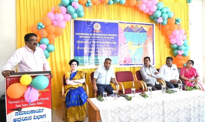 ಮಾನವ ಕಲ್ಯಾಣಕ್ಕೆ ಸಹಕಾರಿಯಾಗಿರುವ ಸಮಾಜ ಕಾರ್ಯವು ವಿಶ್ವ ಮಾನ್ಯತೆಯನ್ನು ಪಡೆದಿದೆ. ಇಂದಿಗೂ ಸಾಮಾಜಿಕ ಕಾಳಜಿ ಇರುವ ವೃತ್ತಿಪರ ಸಮಾಜ ಕಾರ್ಯಕರ್ತರ ಸಾಮಾಜಿಕ ಸೇವೆಯು ಶ್ಲಾಘನೀಯ ಎಂದು ವಿಜಯನಗರ ಶ್ರೀ ಕೃಷ್ಣದೇವರಾಯ ವಿಶ್ವವಿದ್ಯಾಲಯದ ಕುಲಪತಿ ಪ್ರೊ. ಎಂ. ಮುನಿರಾಜು ಹೇಳಿದರು.