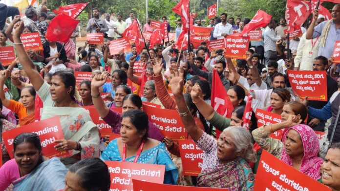 AICCTU ರಾಷ್ಟ್ರ ಕಾರ್ಯದರ್ಶಿಗಳಾದ ಕ್ಲಿಫ್ಟನ್ ಡಿ’ರೊಜಾರಿಯೋ “ಬ್ರಾಂಡ್ ಬೆಂಗಳೂರಿನಲ್ಲಿ ಸಾಹುಕಾರರಿಗೆ ಮಾತ್ರ ಜಾಗವಿದೆಯೇ? ಬೆಂಗಳೂರು ನಗರದಲ್ಲಿರುವ ಬಡವರಿಗೆ, ಮಧ್ಯಮ ವರ್ಗದವರಿಗೆ ಸೇವೆ ಸಲ್ಲಿಸುವ ಬೀದಿ ವ್ಯಾಪಾರಿಗಳಿಗೆ ಜಾಗ ಏಕಿಲ್ಲ? ಬೆಂಗಳೂರು ನಗರದ ರಸ್ತೆಗಳಲ್ಲಿ ಬರೀ ಕಾರುಗಳಿಗೆ ಮಾತ್ರ ಹೆಚ್ಚು ಜಾಗ ಕೊಡುತ್ತಿರುವ ಸರ್ಕಾರ ಬೀದಿ ವ್ಯಾಪಾರಿಗಳನ್ನು ಒಕ್ಕಲೆಬ್ಬಿಸುವುದು ಕಾನೂನು ಬಾಹಿರ ಹಾಗೂ ಅಮಾನವೀಯ” ಎಂದು ಹೇಳಿದರು.