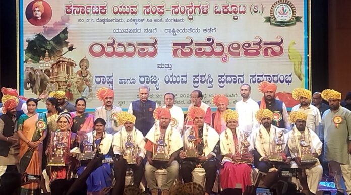 ರಾಜ್ಯ ಮಟ್ಟದ ಯುವ ಸಮ್ಮೇಳನ ಮತ್ತು ಪ್ರಶಸ್ತಿ ಪ್ರದಾನ ಸಮಾರಂಭದಲ್ಲಿ ಕಲೆ, ಕ್ರೀಡೆ, ಸಮಾಜ ಸೇವೆ, ಪರಿಸರ ಸಂರಕ್ಷಣೆ ಸೇರಿದಂತೆ ವಿವಿಧ ಕ್ಷೇತ್ರಗಳಲ್ಲಿ ಸಾಧನೆಗೈದ ರಾಷ್ಟ್ರ ಹಾಗೂ ರಾಜ್ಯದ 30 ಮಂದಿ ಯುವ ಸಾಧಕರಿಗೆ ಪ್ರಸಕ್ತ ವರ್ಷದ ರಾಜ್ಯ ಯುವ ಪ್ರಶಸ್ತಿ ಪ್ರದಾನ ಮಾಡಲಾಯಿತು.