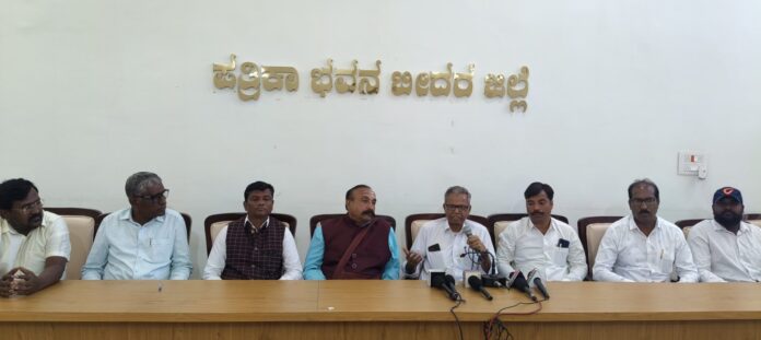 ಬೀದರ್ ನಗರದಲ್ಲಿ ಗುರುವಾರ ನಡೆದ ಜಂಟಿ ಪತ್ರಿಕಾಗೋಷ್ಠಿಯಲ್ಲಿ ಓಂಪ್ರಕಾಶ ರೊಟ್ಟೆ, ಬಾಬುರಾವ್ ಹೊನ್ನಾ, ಜಗದೀಶ್ವರ ಬಿರಾದಾರ, ಮಹೇಶ ಗೋರನಾಳಕರ್, ಸಂತೋಷ ಜೋಳದಾಬಕೆ, ಸಿದ್ದು ಫುಲಾರೆ, ರಾಜಕುಮಾರ ಪಾಟೀಲ ಹಾಗೂ ಪ್ರಕಾಶ ರಾವಣ ಮಾತನಾಡಿದರು.